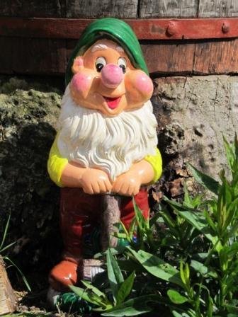 A sógorom nagyon szereti a kerti törpéket. Volt egy időszak, amikor mindig, mindenkitől törpét kért, és bárkinek törpét ajándékozott. Így fordult elő, hogy pár évvel ezelőtt mi is kaptunk tőle, egy kb. 50 centi magas szakállas, fűnyírós törpicseket. Bár én nem vagyok fanatikus törpe rajongó, ha már volt ez az egy példány, beállítottam egy frissen ültetett növényke mellé, hadd érezze a törődést. Jól el is voltak kettecskén, a virág szépen növögetett, a törpe meg állt rendületlenül, többször a frászt hozva a kertben gyanútlanul sétálgató macsekokra. Bár télre mindig beköltöztettem a törpét, szegénynek az idő során jócskán megkopott hajdani fénye. Végül idén tavasszal úgy döntöttem jobb sorsa érdemes szegény, és alapos felújításnak vetettem alá. Az eredeti állapotról, amilyen akkor volt, mikor megkaptuk sajnos nincsen képen, de egy olyat, ami most a felújítás előtt készült, felteszek ide.